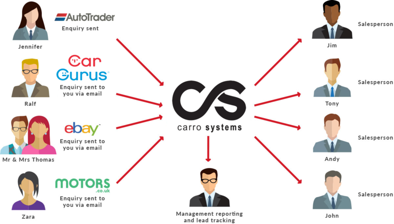 Within the Carro system, leads are alerted to users upon arrival, managers can assign leads to staff members and all leads are tracked and reported upon